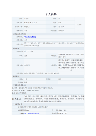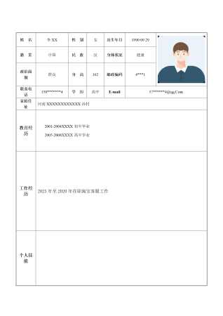 淘宝客服类简单表格求职简历模板