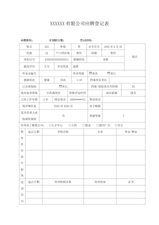 生物制药医药公司相关岗位招聘登记表格模板