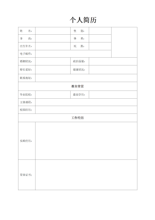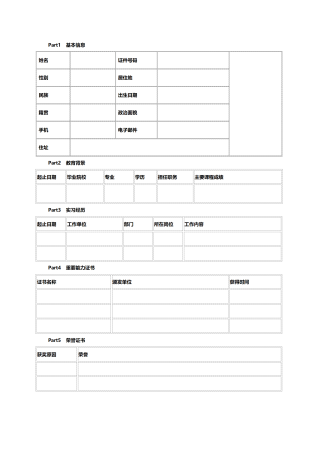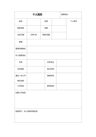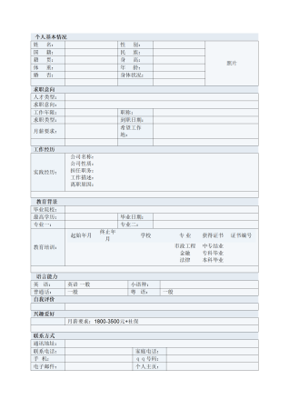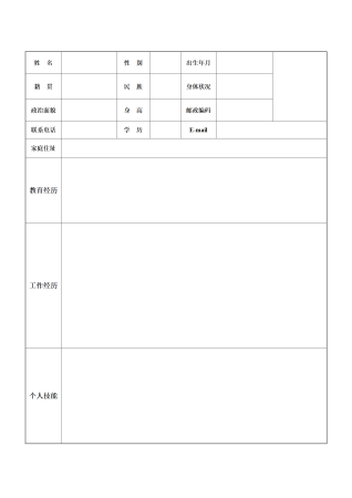 标准空白表格简历模板