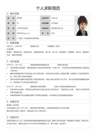 简单简洁有照片表格个人求职简历模板