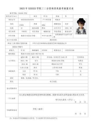 清单式简历填写表格