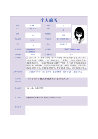 简单简介表格个人求职简历模板