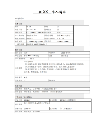 行政文职类实习岗位空白表格求职简历模板