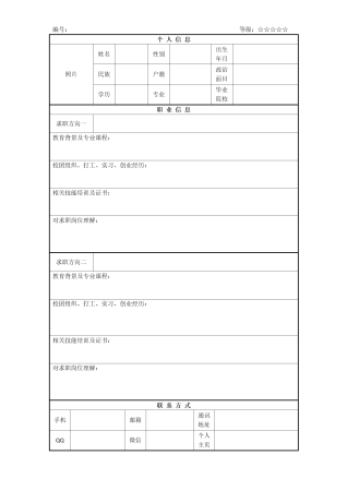 专业求职空白简历表格