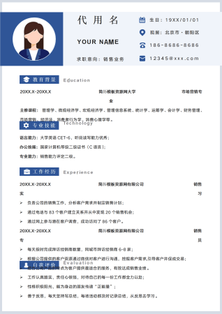 高级业务代表简历模板