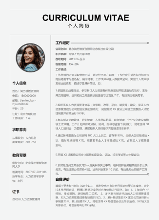 人事人力资源简历