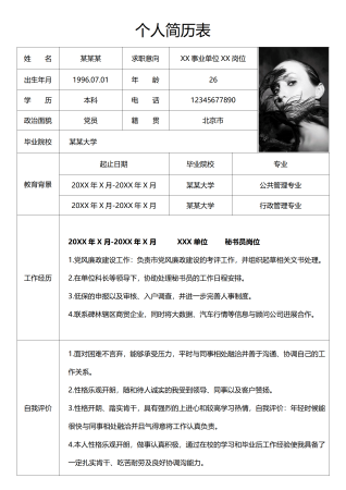 公务员通用简历