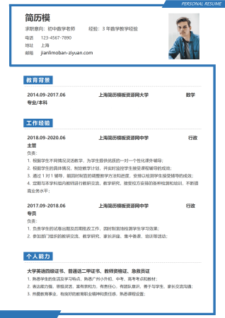 初中数学老师中学教师简历