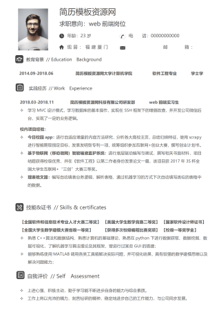 前端开发男士求职简历模板