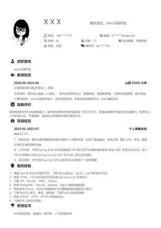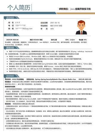 简约Java后端开发应届毕业生简历