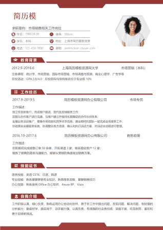 橙色时尚简约实用行市场销售1年工作经验简历word模板