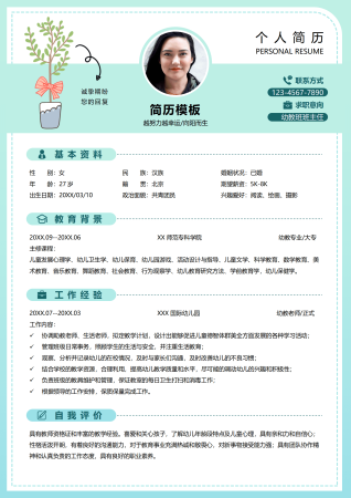 幼儿教师幼师幼教相关岗位求职简历模板