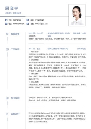 应届生简历实习生简历新媒体运营个人求职简历word简历模板