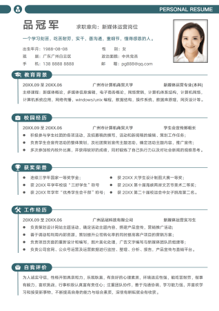 校招新媒体运营应届生简历模板