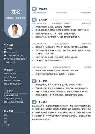 应届生简历实习生简历新媒体运营个人求职简历word简历模板