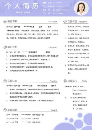 应届生法学类无经验校招个人简历模板法务助理求职CV模板