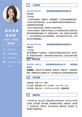 蓝色商务网络销售 1年工作经验简历word模板