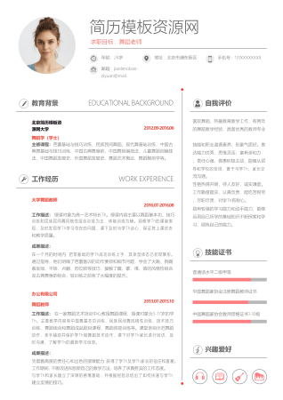 美女舞蹈老师简历模板