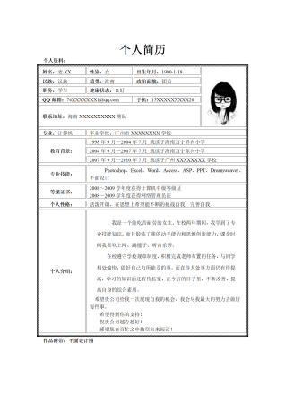 简历模版——信息计算机应用技术