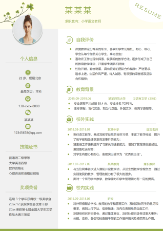 上下结构蓝色简约初中语文老师教师社招求职简历