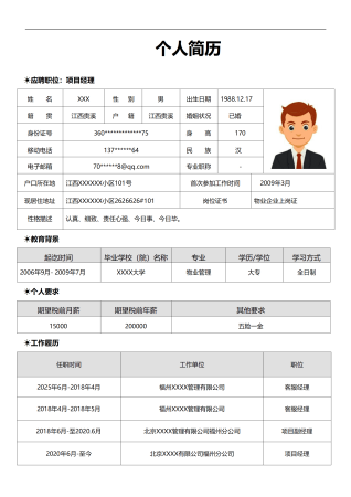 物业项目经理简历模板