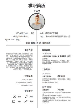 生态蓝行政助理求职简历模板