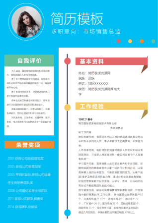 清新蓝色市场销售总监求职简历Word模板