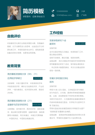 证券财会应届实习生简历Word模板通用