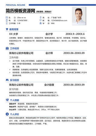 财务会计文职内勤类相关岗位求职简历模板