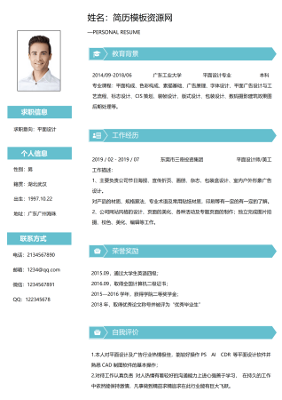 平面设计简历1年以下经验通用大气风格