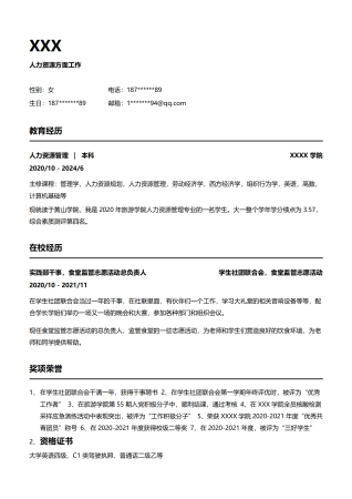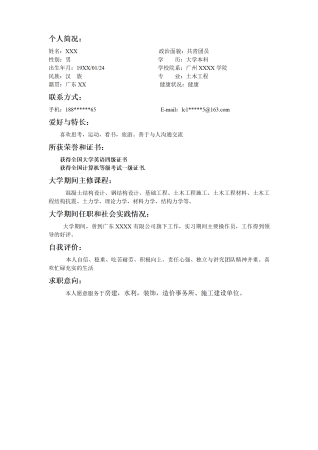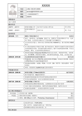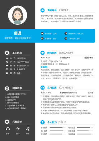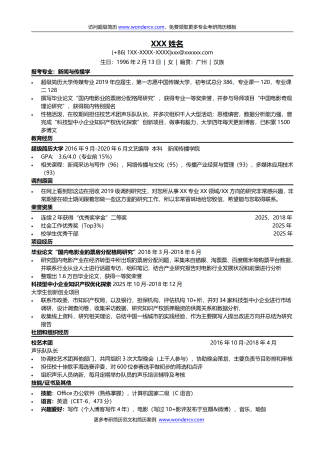 护理专业应届生个人简历模板医学生RESUME护士个人求职CV