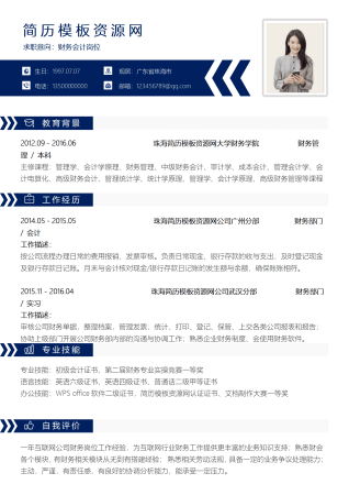 左右结构蓝色简约护士实习应届大学生校招求职简历