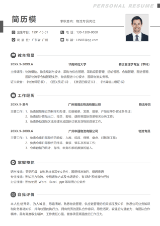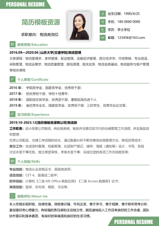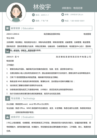 清新紫色水彩风简约物流主管个人求职简历Word模板