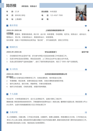上下结构蓝色简约初中语文老师教师社招求职简历