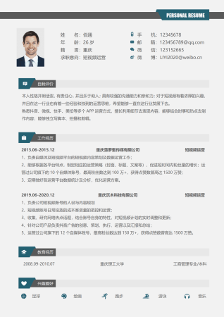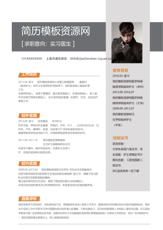 护士个人简历模板护理专业医学生3-5年工作经验简约风求职CV
