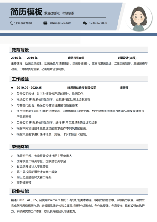 插画师简历写法模板