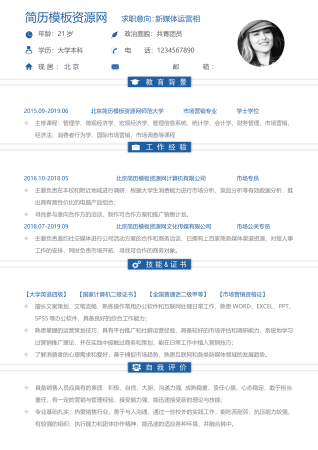 新媒体岗位应聘简历标准格式