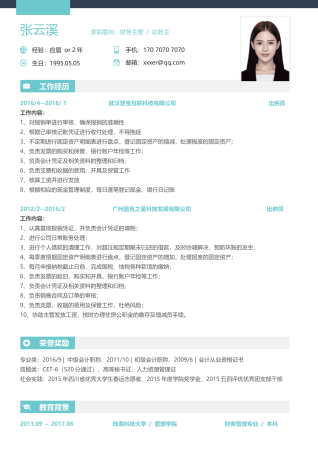 财务经理总监主管 简历范文