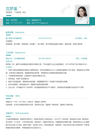 商务管理财务信息管理相关专业毕业生求职简历模板
