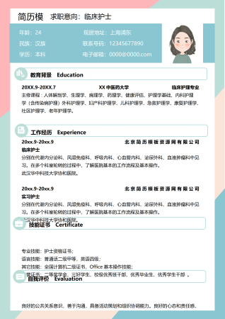 专业护士单页简历模板