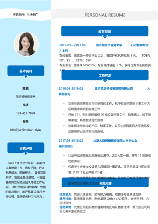 超实用可编辑蓝色风个人简历word模板