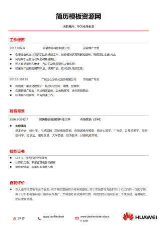 华为公司应聘简历模板