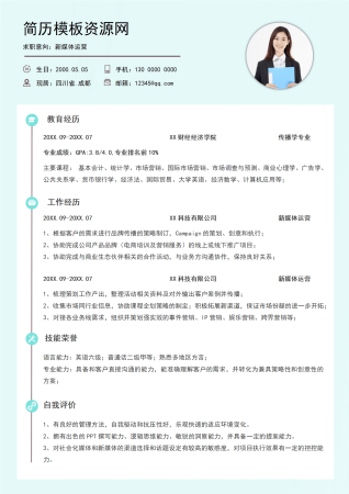 应届生简历实习生简历新媒体运营个人求职简历word简历模板