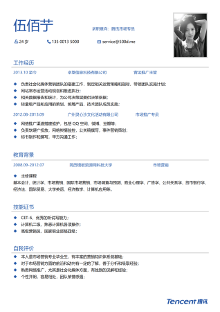 腾讯公司应聘简历模板