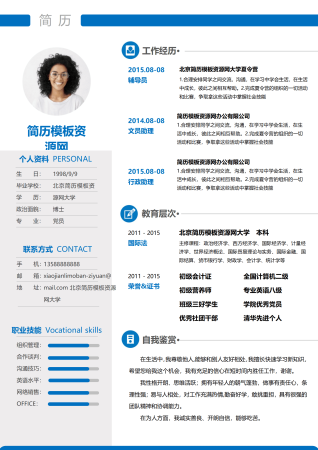 蓝色简洁行政简历个人简历模板