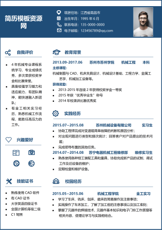 经典商务风互联网求职经理求职简历深蓝色word格简历模板