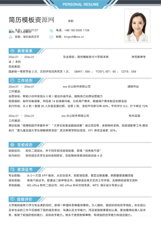 外贸业务员创意简历1到3年经验蓝色单页创意版