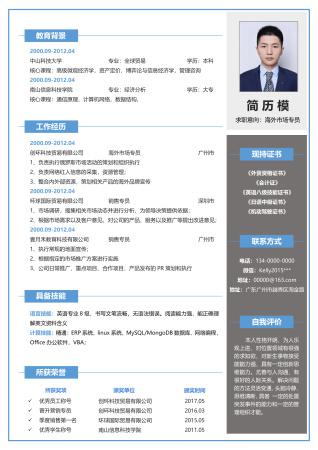 经典风格市场销售求职简历浅蓝色word简历模板