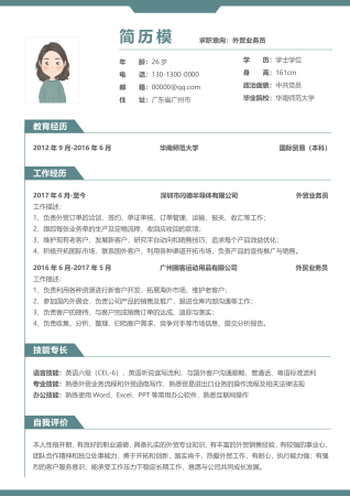 男士专用外贸业务员简历沉稳商务风