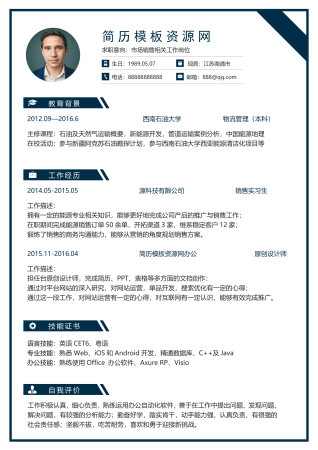蓝色市场销售简历word简历